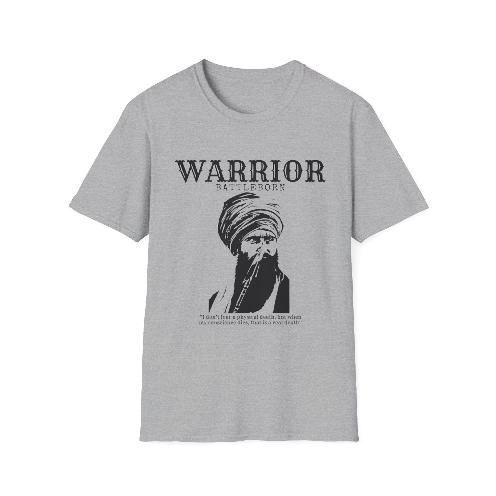 Honor the legacy of Saint Jarnail Singh Bhindranwale with this exclusive graphic T-shirt. Designed for those who value Sikh history and heritage, this T-shirt features a bold and respectful depiction of Bhindranwale, symbolizing strength, spirituality, and courage. Made with premium-quality fabric, this unisex T-shirt is both stylish and comfortable, making it perfect for everyday wear or special cultural events. Available in multiple sizes and colors, it's a meaningful addition to any wardrobe or an ideal gift for those who admire Sikh values and history. The unisex soft-style t-shirt puts a new spin on casual comfort. Made from very soft materials, this tee is 100% cotton for solid colors. Heather colors and sports grey include polyester. The shoulders have twill tape for improved durability. There are no side seams. The collar is made with ribbed knitting to prevent curling damage. .: Made with 100% ring-spun cotton, a lightweight fabric (4.5 oz/yd² (153 g/m²)), this unisex t-shirt feels like a bliss to wear all year round. .: The classic fit with the crew neckline deliver a clean, versatile style that can match any occasion, whether it's formal or semi-formal. .: All shirts feature a pearlized, tear-away label for total wearing comfort. .: Made using ethically grown and harvested US cotton. Gildan is also a proud member of the US Cotton Trust Protocol ensuring ethical and sustainable means of production. This blank tee is certified by Oeko-Tex for safety and quality assurance. .: Fabric blends: Heather colors - 35% ring-spun cotton, 65% polyester; Sport Grey and Antique colors - 90% cotton, 10% polyester, Graphite Heather - 50% ring-spun cotton, 50% polyester EU representative: HONSON VENTURES LIMITED, gpsr@honsonventures.com, 3, Gnaftis House flat 102, Limassol, Mesa Geitonia, 4003, CY Product information: Gildan 64000, 2 year warranty in EU and Northern Ireland as per Directive 1999/44/EC Warnings, Hazard: For adults, Made in Bangladesh Care instructions: Machine wash: warm (max 40C or 105F), Do not bleach, Tumble dry: low heat, Iron, steam or dry: low heat, Do not dryclean